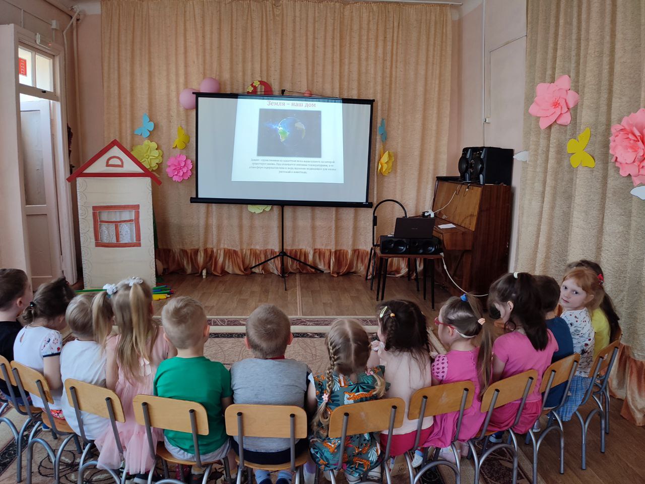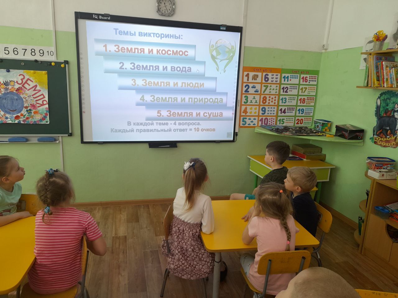 День Земли - это праздник чистой воды, земли и воздуха. Этот праздник призван побудить людей быть внимательными к нашему общему дому- планете Земля. Это день, когда каждый человек должен задуматься над тем, как он может помочь проблемам нашей природы. Очень важно воспитывать у дошкольников интерес и бережное отношение к родной Земле, желание её охранять и оберегать. Дети просмотрели обучающие презентации, участвовали в познавательных беседах, экологических играх. В своём творчестве дети постарались отразить любовь к своей Земле, какой бы они хотели её видеть. Очень интересно прошла интерактивная викторина «Земля - наш общий дом». Ребята прошли несколько испытательных этапов. В ходе викторины они разгадывали загадки, отвечали на вопросы о жизни животных и растений, о земле, воде, воздухе, о правилах поведения на природе и многое другое. Все ребята показали хорошие знания и получили массу хороших впечатлений.