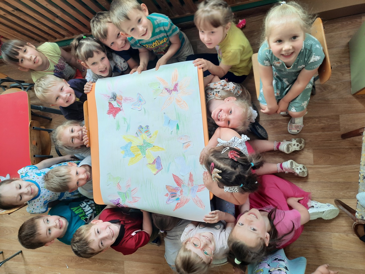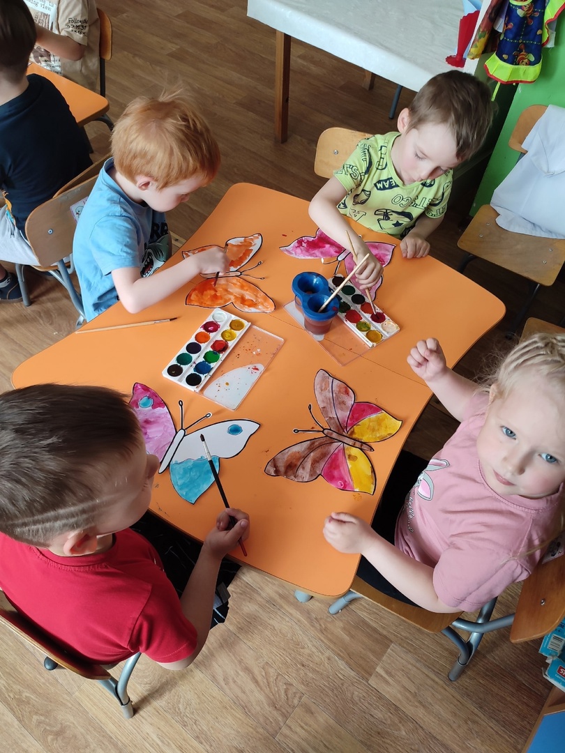 В нашем саду прошёл День бабочек. Педагоги вместе с детьми поговорили о бабочках, их видах и о том, что их надо беречь, читали стихи, загадывали загадки, раскрашивали, делали коллективную аппликацию «Бабочки на поляне».