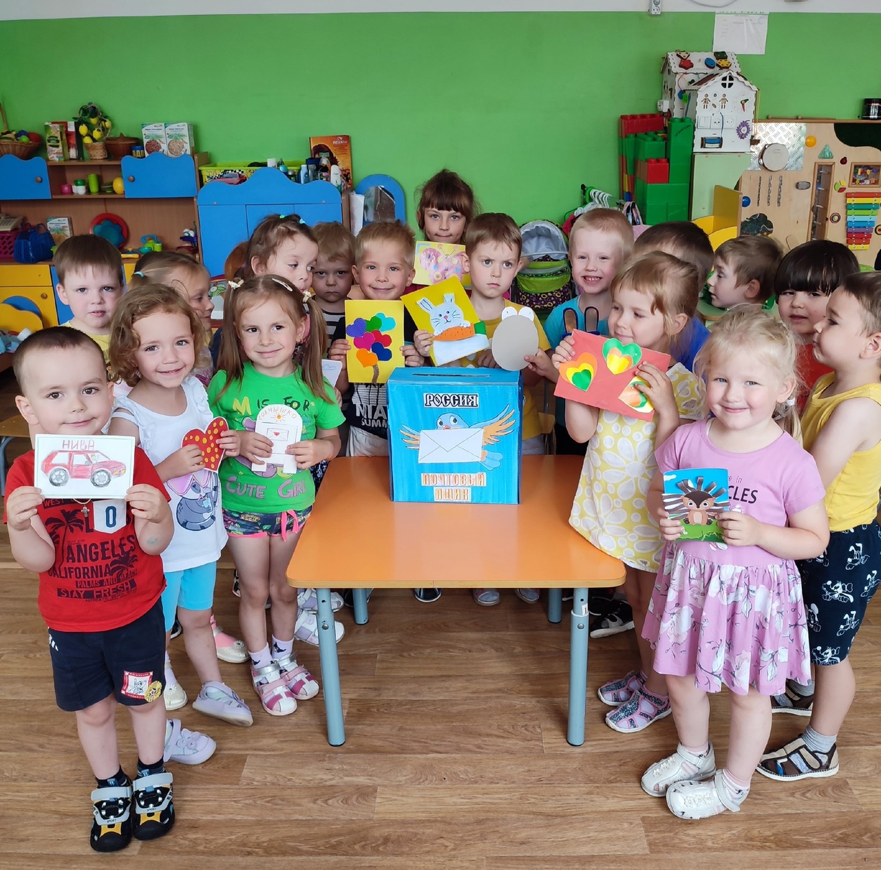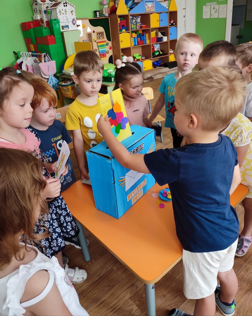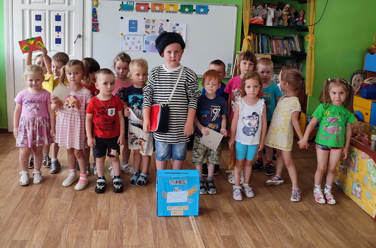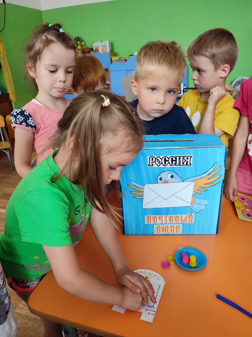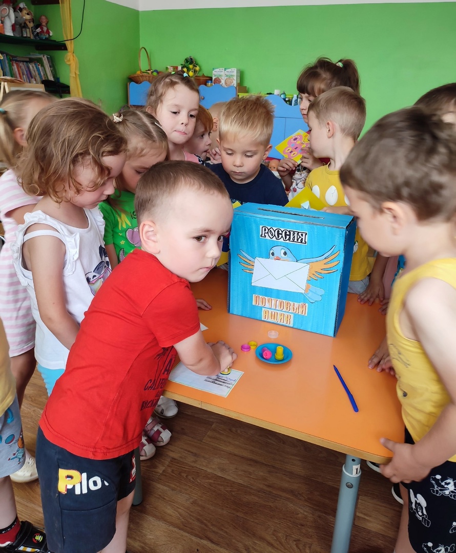 Современные дети сейчас даже не представляют, как это писать письма и отправлять их через почту. Что такое почтовый ящик? Как он выглядит? Как попадают письма из одного города в другой? Обо всем об этом мы поговорили с детьми. Они рассматривали конверты, сами делали марки, штампы и опускали открытки-приветы своим друзьям из группы в почтовый ящик.