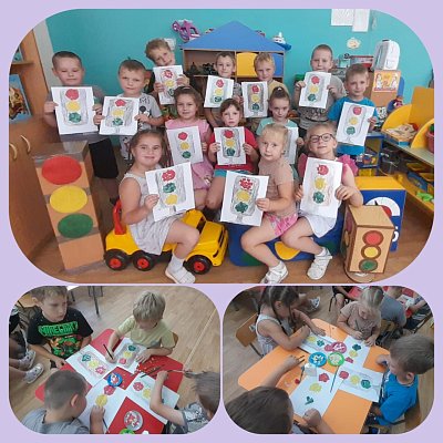 Ребята выполнили поделку в технике отрывной аппликации, конечно, это был светофор. Играли в различные игры по правилам безопасного поведения на дороге.