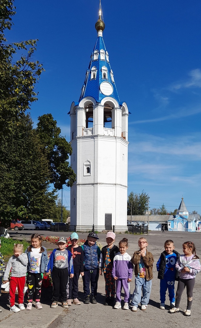 Ребята подготовительной группы продолжили цикл познавательных экскурсий по родному городу. На этот раз мы отправились в центр города, прогулялись по центральной площади, посетили памятник лётчикам, колокольню Казанского собора, памятник поэту-песеннику А.И.Фатьянову. Данные тематические прогулки несут в себе нравственно-патриотическое воспитание дошкольников, расширяют их представления о родном городе и его истории.