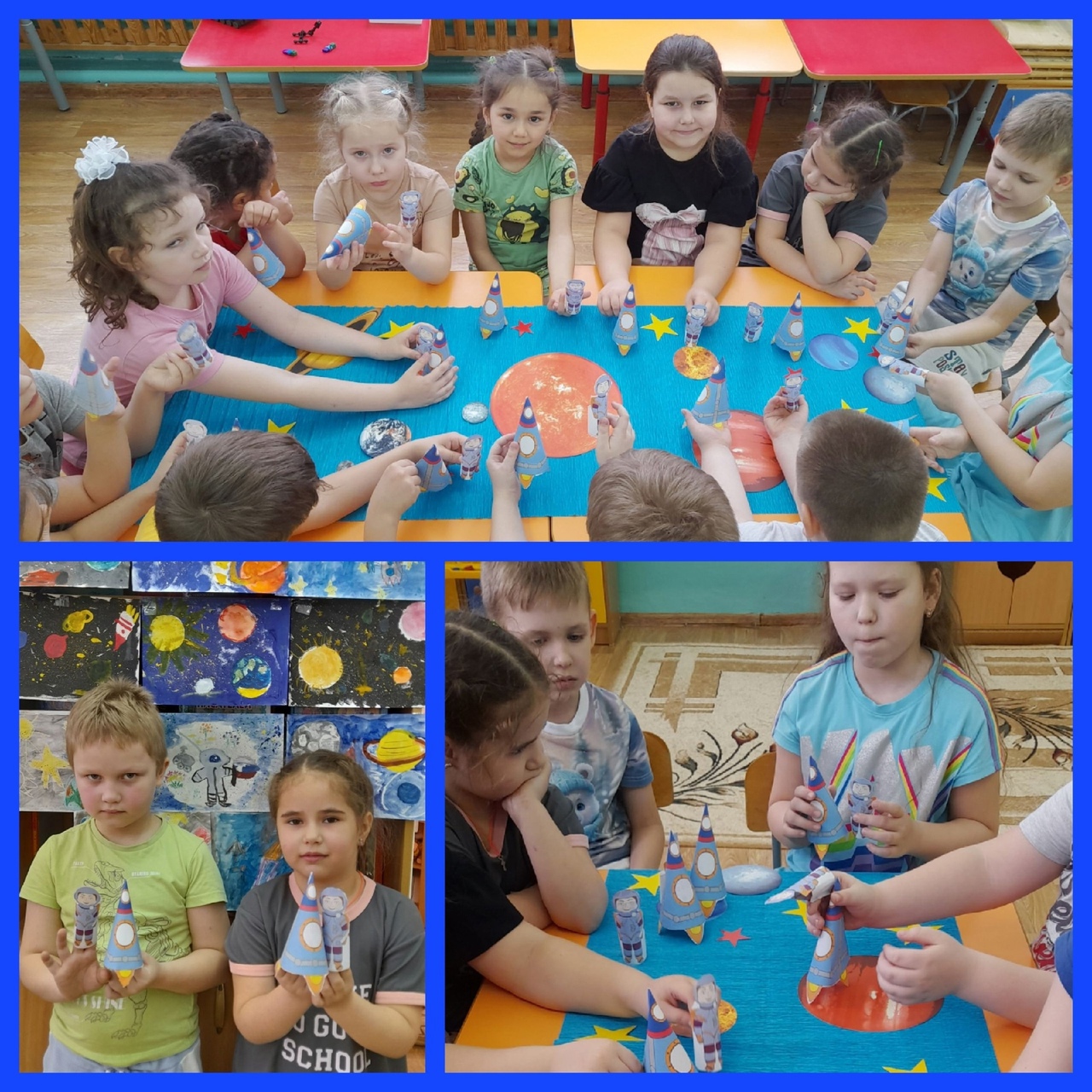 В преддверии этой знаменательной даты в подготовительной группе прошла «Неделя космонавтики». Дети познакомились с историей освоения космоса, узнали о человеке, покорившем космическое пространство - Юрие Гагарине, первой женщине космонавте Валентине Терешковой. Играли в дидактические игры «Угадай созвездие», «Расположи звезды на небе» и т.д . Дети отображали свои знания в художественно - изобразительной деятельности: рисовали солнечную систему, делали макеты космической ракеты и космонавта.