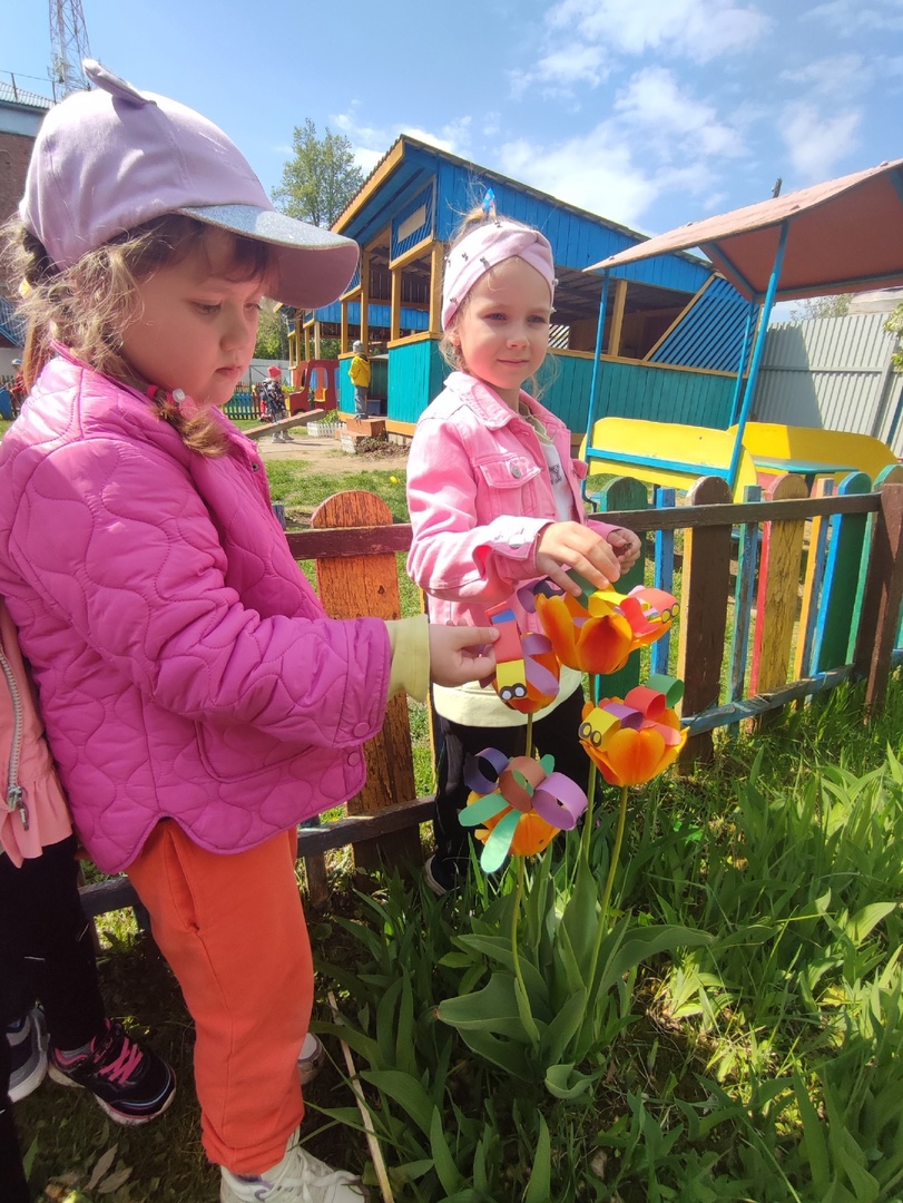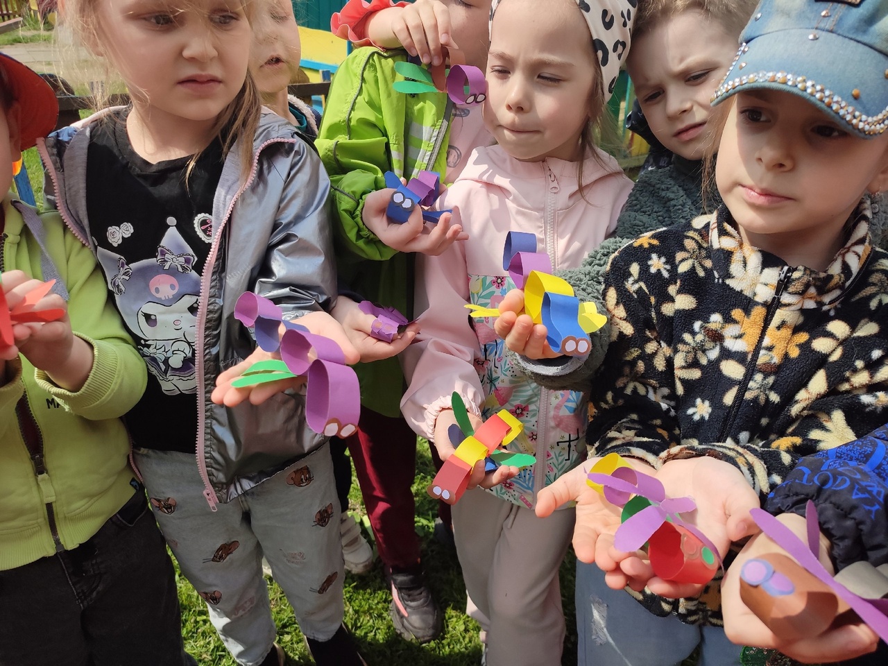 Дети от увиденного были в восторге, и мы решили сделать из бумаги "Радужную стрекозу", которые вечером отправились гулять.