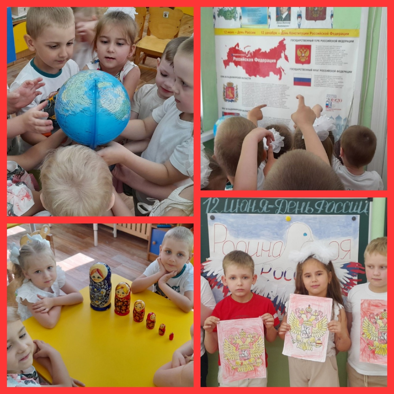 12 июня наша страна отмечает замечательный праздник — День России. Накануне этого праздника у нас прошел тематический день. Целью этого мероприятия было формирование у детей представлений о России как о государстве, о родной стране, воспитание чувства любви к Родине.