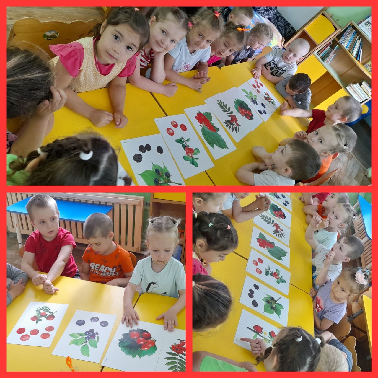 В течение недели с детьми средней группы были проведены беседы: «Какие бывают ягоды цветом и формой», "Польза ягод для здоровья". Ребята рассматривали иллюстрации, читали сказки: «Кто малину съел?», «Сказка про Мишутку, лису и ягоды».