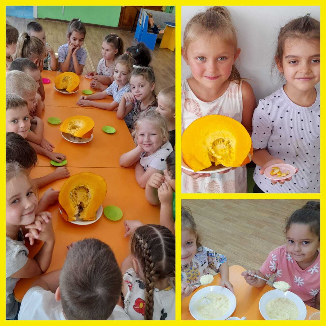 Ребята подготовительной группы продолжили знакомиться с овощами. Дети узнали о том как растёт тыква , как она появилась в России, попробовали очень вкусную кашу с тыквой и выяснили, какую пользу она приносит организму.